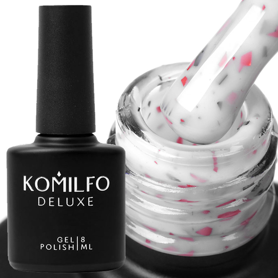 База для ногтей Komilfo Potal Base P018, белая с розовой и черной поталью, 8 мл