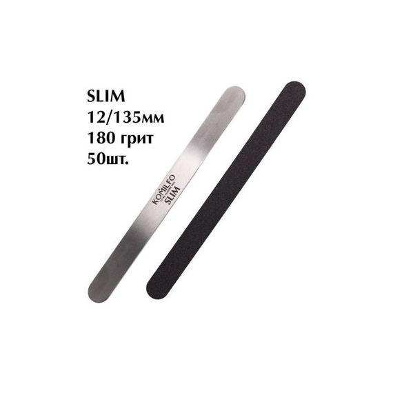 Komilfo replacement files for manicure SLIM 180 grit 12/135mm, 50 pcsKomilfo removable files for manicure - comfort for masters and safety for clients!The base is designed for multiple use. It can only be used in conjunction with a disposable self-adhesive replacement file. For each new client, a new plug-in file is used, which is disposed of at the end of work. The metal base itself is made of very durable surgical steel. It can be washed and sterilized both in special solutions, sterilizers, and in a dry-heat cabinet.