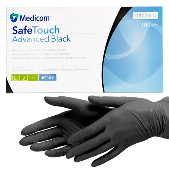 Перчатки черные нитриловые Medicom SafeTouch Advanced L, 100 шт
