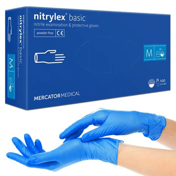 Нитриловые перчатки Nitrylex без пудры. Изготовлены из нитрила, материала, известного своей высокой прочностью на растяжение, стойкостью к проколам и отсутствием латексных протеинов, что делает их безопасным выбором для людей с аллергией на латекс.