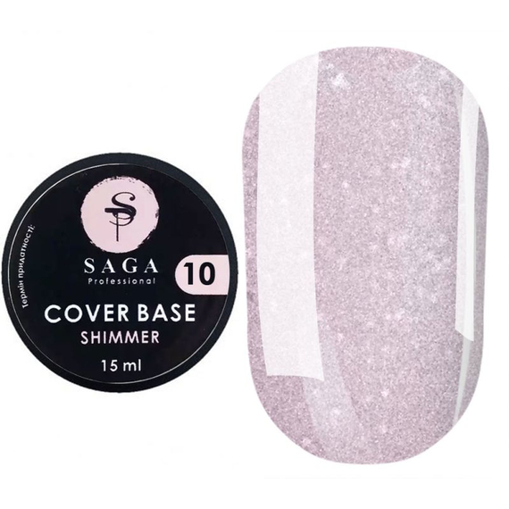 База для нігтів Saga Shimmer base №10, ніжно-рожева з шиммером, 15 мл