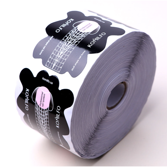 Формы Komilfo multi shape nail, 500шт.Мультифункциональные формы для наращивания, она используются для выкладывания искусственных ногтей гелем или акрилом. С помощью них очень удобно моделировать материал на натуральных ногтях, создавая желаемую длину за границами свободного края. У формы есть ушки, они обозначены. Это для того чтобы легко можно было подрезать форму под боковые валики. Плюс в этих формах, что у них самый высокий уровень липкости. Также они не расклеиваться как другие формы, которые могут испортить форму ногтя при моделировании. С такими проблемами сталкиваться многие мастера, которые наращивают. С помощью мультифункциональной формы для наращивания, можно создать 3-и вида форм для ногтей (айп, стилет, квадрат и прочие).