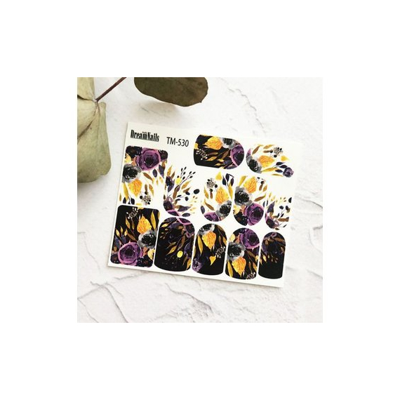 Слайдер дизайн TM 530Слайдер дизайн представляет собой достаточно легкий способ нанесения на ногти сложных фотографических рисунков. Слайдер дизайн - это тонкая эластичная пленочка с изображением, нанесенная на бумагу (бумага для удобства хранения и транспортировки).Такой способ декорирования ногтей очень прост, но эффект неповторимый. Благодаря огромному разнообразию цветов и рисунков, с помощью слайдердизайна можно создавать самые разные нейл-арты без особого труда. При правильном нанесении, такой дизайн достаточно стойкий.